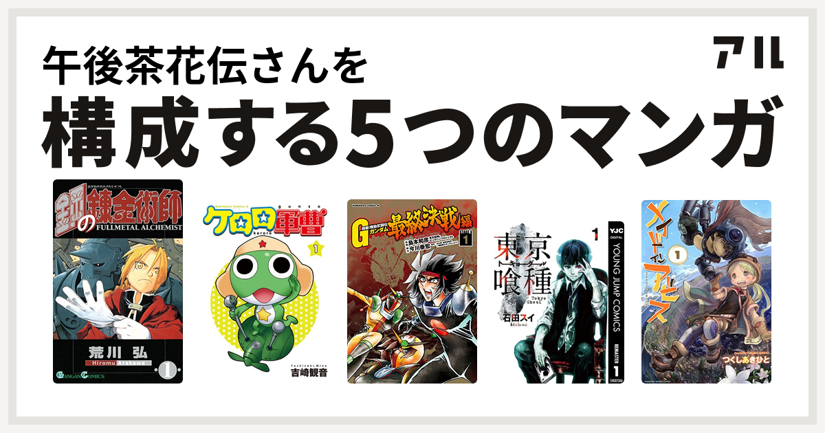 午後茶花伝さんを構成するマンガは鋼の錬金術師 ケロロ軍曹 超級 機動武闘伝gガンダム 最終決戦編 東京喰種トーキョーグール メイドインアビス 私を構成する5つのマンガ アル